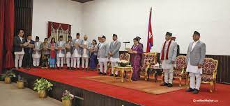 नवनियुक्त मन्त्रीहरूलाई राष्ट्रपति रामचन्द्र पौडेलले शितल निवासमा शपथ गराउनुभएको छ । प्रधानमन्त्री पुष्पकमल दाहाल प्रचण्डले पुनर्गठन गरेको मन्त्रिपरिषदमा नेकपा एमालेका सचिव समेत रहेका रघुवीर महासेठले प्रधानमन्त्रीपछिको वरीयता क्रममा उपप्रधान तथा भौतिक पूर्वाधार मन्त्रीको शपथ लिनुभएको छ । उहा एमालेको नेतृत्व गर्दै सरकारमा सहभागी हुनुभएको हो ।