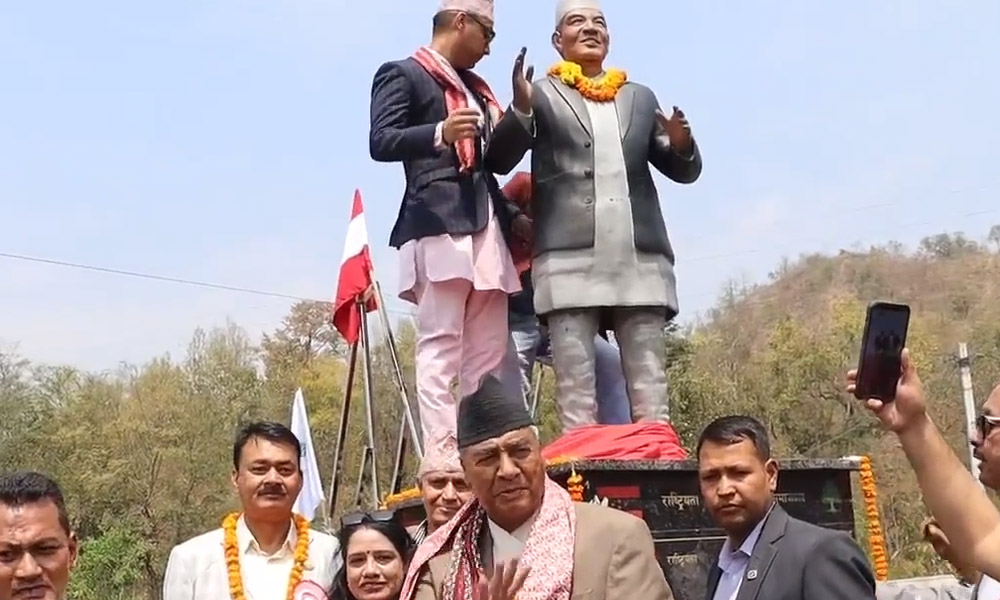 नेपाली कांग्रेसका नेता एवम पूर्व गृहमन्त्री स्वर्गीय खुमबहादुर खड्काको स्मृतिमा निर्माण गरिएको पूर्णकदको शालिकको पार्टी सभापति शेरबहादुर देउवाले अनावरण गर्नुभएको छ ।