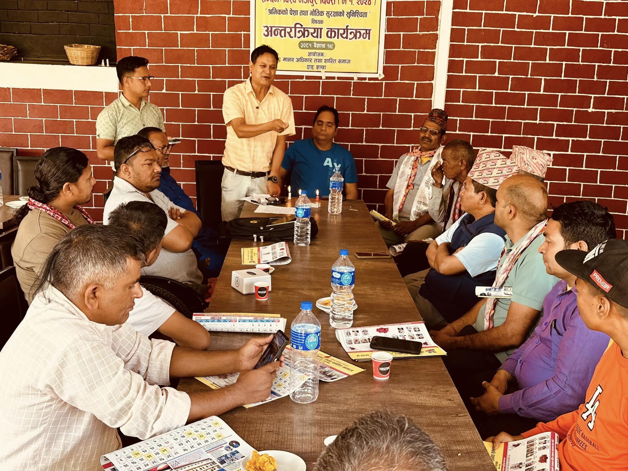 शाखाका कार्यबाहक सभापति कोमल डिसीको सभापत्विमा भएको कार्यक्रममा मानव अधिकार तथा शान्ति समाजका केन्द्रिय सचिव निर्मल नेपालीले अवधारणा पत्र प्रस्तुत गर्नुभएको थियो । सो अवसरमा मानव अधिकार तथा शान्ति समाजका निर्वतमान केन्द्रिय बरिष्ठ उपसभापति सुशील बस्नेत, केन्द्रिय सदस्य तुलसीराम सुनार,दलित संघका सन्तोष चनारा,श्रमिक सुदर्शन सुनार,सहसचिव माधव बस्नेत,सदस्य भिमलाल मरासीनि लगायतले आ आफ्ना भनाई राख्नुभएको थियो । कार्यक्रममा शान्ति समाजका कोषाध्यक्ष यज्ञ बिकले स्वागत मन्तब्य र सञ्चालन सचिव अमृतप्रसाद शर्माले गर्नुभएको थियो ।