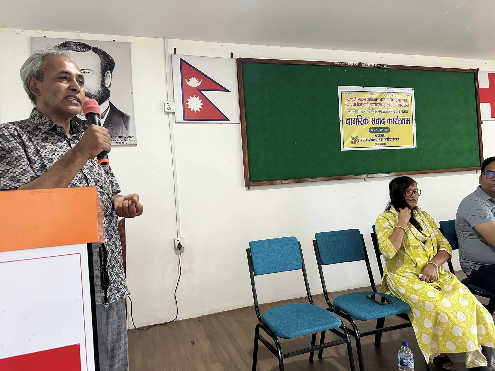 कार्यक्रममा नागरिक समाजको हस्तक्षेप आबश्यक बिषयक नागरिक संवाद बिषक अवधारणा पत्र प्रस्तुत केन्द्रिय सचिव निर्मल नेपाली, सबै बक्ताको बिचार,सुझाव र आलोचनाको संक्षेपीकरण निवर्तमान केन्द्रिय बरिष्ठ उपसभापति सुशील बस्नेतले गर्नुभएको थियो । शाखा सदस्य तिलसरा पुनको स्वागत मन्तब्य बाट शुरु भएको कार्यक्रमको सञ्चालन अमृत प्रसाद शर्माले गर्नुभएको थियो ।