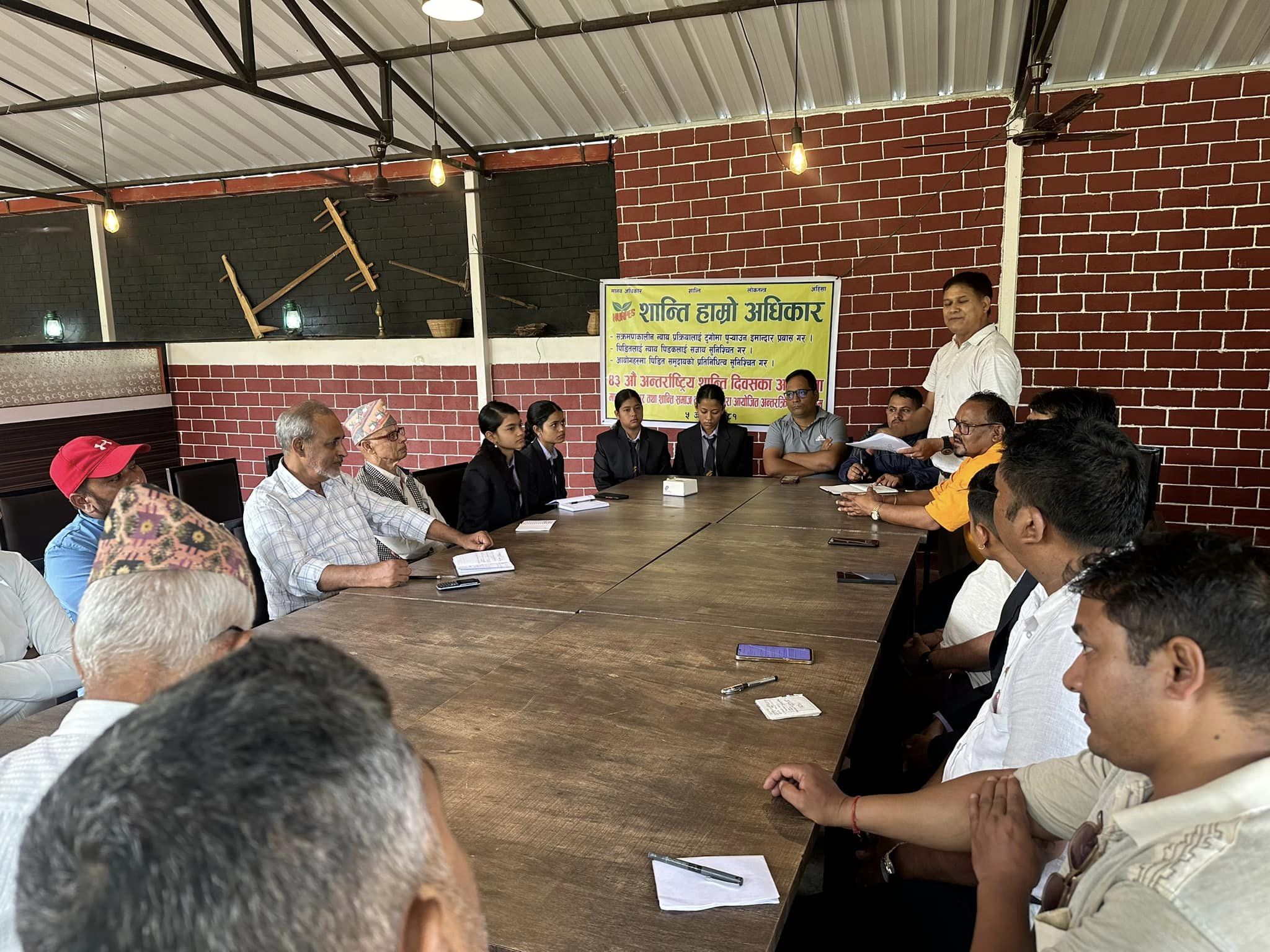 कार्यक्रममा उच्च अदालत बार एशोसियसन तुलसीपुरका उपाध्यक्ष श्रीराम चौधरी,मानव अधिकार तथा शान्ति समाजका केन्द्रिय सचिव निर्मल नेपाली,निर्वतमान बरिष्ठ उपसभापति सुशील बस्नेत,केन्द्रिय सदस्य तुलसीराम सुनार,प्रेस स्वतन्त्रता सेनानी टिकाराम रेग्मी,नेपाल प्रेस युनियन दाङका अध्यक्ष नारायण खड्का,तुलसीपुर उद्योग बाणिज्य संघका उपाध्यक्ष नरेश राजभण्डारी,नेपाल दलित संघ लुम्बिनी प्रदेशका सचिव खेमराज सेन्चुरी,शान्ति समाज दाङका सल्लाहकार निर्मला डाँगी योगी,कानुन संकायका बिद्यार्थी प्रशंसा केसी लगायतले संक्रमणकालिन न्यायका बिषयमा भनाई राख्नुभएको थियो । उहाँहरुले बृस्तीत शान्ति सम्झौताको मर्म र भावनालाई सम्बोधन हुने गरि संक्रमणकालिन न्याय मार्फत दिगो शान्ति हुनुपर्नेमा जोड दिनुभयो । सो अवसरमा मानव अधिकार तथा शान्ति समाजका निवर्तमान केन्द्रिय बरिष्ठ उपसभापति सुशील बस्नेतले बेपत्ता पािरएका ब्यक्तिको छानबिन,सत्य निरुपण तथा मेलमिलाप आयोग ऐन,२०७१ लाई संशोधन गर्न बनेको ऐनमा उल्लेखित महत्वपूर्ण बुँद्धा मानव अधिकार तथा शान्ति समाजले उठान गरेका सवालका बारेमा प्रस्तुतिकरण गर्नुभएको थियो । कार्यक्रमको सहजिकरण सहसचिव अधिबक्ता मधुसुदन गौतमले गर्नुभएको थियो ।