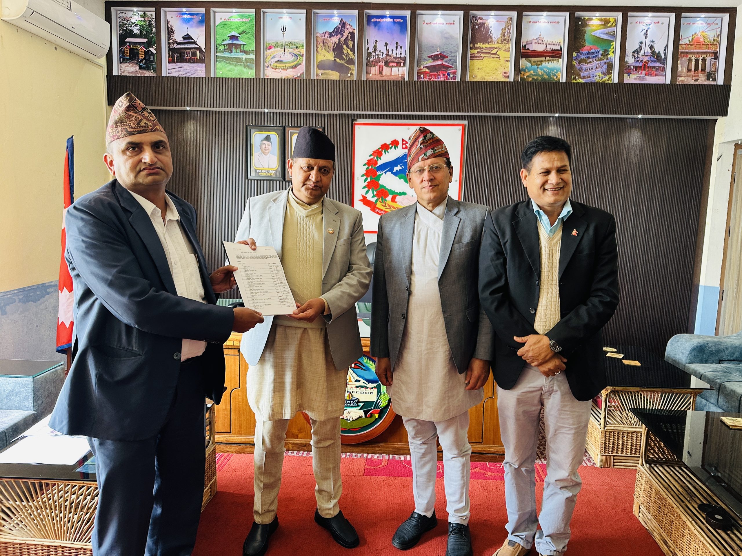 लुम्बिनी प्रदेश र सुदूरपश्चिम प्रदेशका मुख्यमन्त्रीस्तरीय दोस्रो संयुक्त बैठकबाट गठित सुझाव समितिको प्रतिवेदन लुम्बिनी r सुदुरपश्चिम प्रदेशका मुख्यमन्त्रीलाई बुझाएको छ |