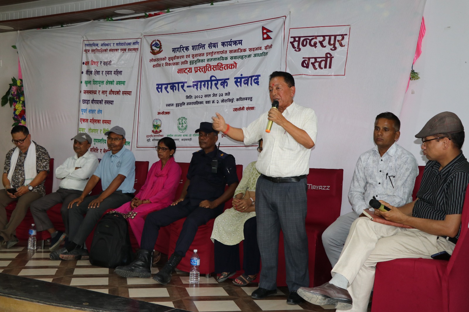 कपिलबस्तुको बुद्दभुमिका बिभिन्न वडा र समुदायहरूमा नाट्य प्रस्तुति सहितका १० वटा सरकार–नागरिक संवाद कार्यक्रम सम्पन्न भएका छन् ।