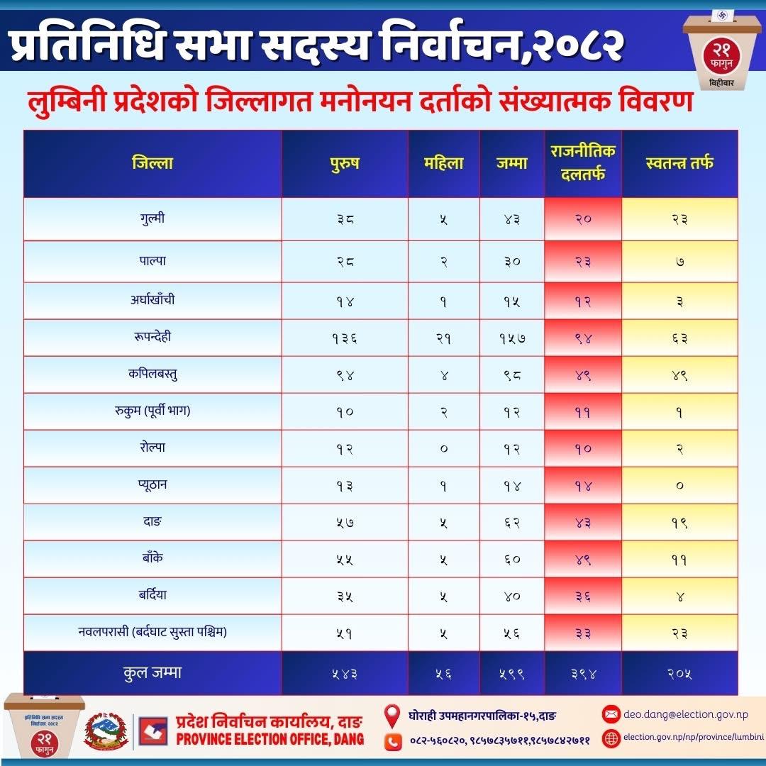 लुम्बिनी प्रदेशमा ५९९ जना,महिला ५६ जनाको उम्मेदवारी